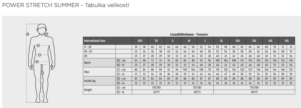 Velikosti - XXS-XS-S-M-L-XL-XXL-3XL-4XL-5XL
